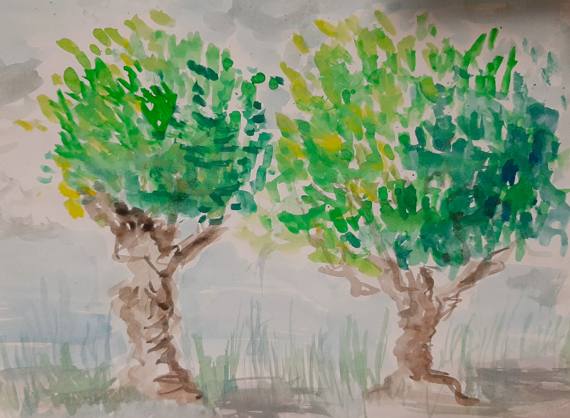 I stumbled upon Olsikowa and Nefka, took out school watercolor paint and tried to draw trees