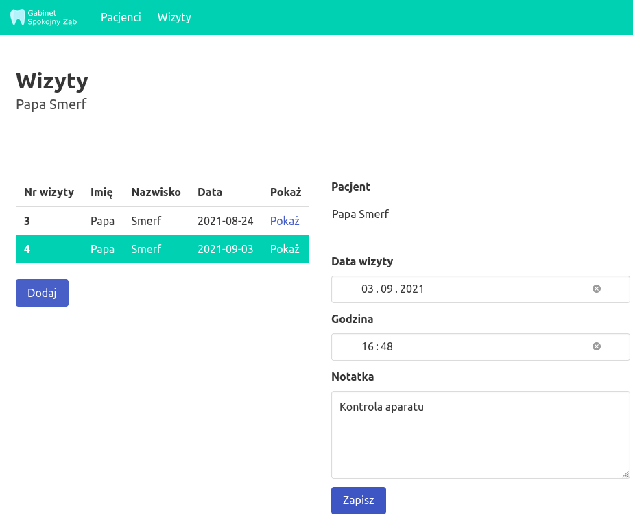 - 2021-23-08 - Gabinet dentystyczny - dodanie wizyt